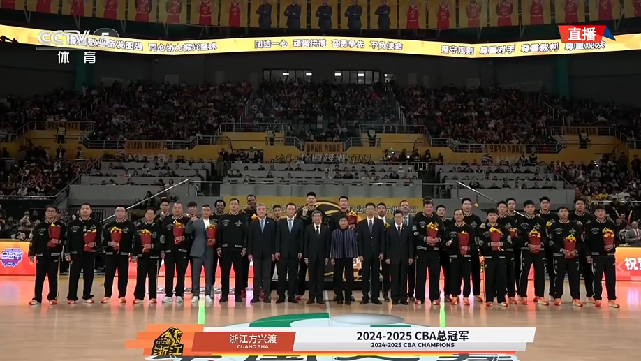 赛前,广厦举办上赛季的总冠军授奖典礼,广厦将帅挨次领取属于他们的总冠军规矩,胡金秋还代表因为禁赛无法登场的楼明领取总冠军规矩。